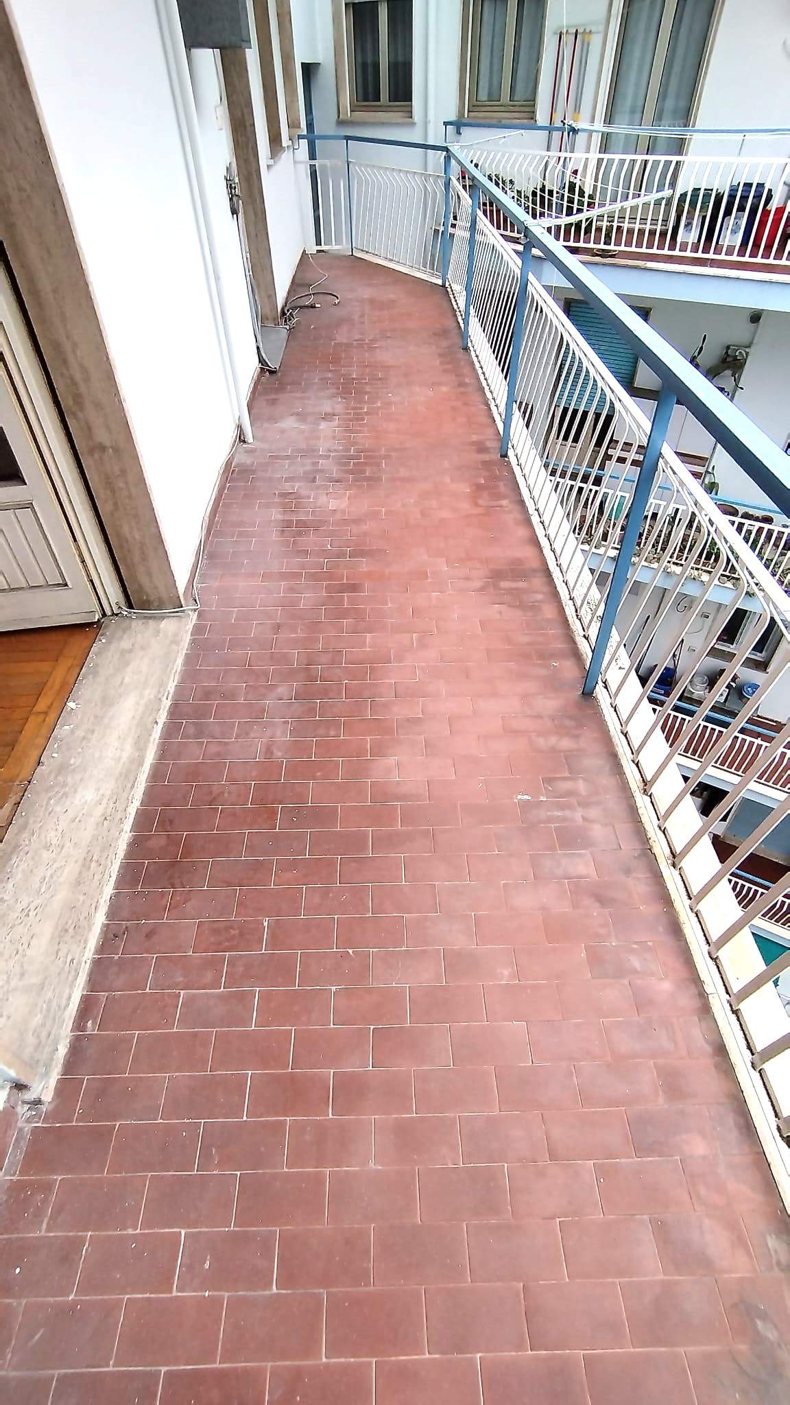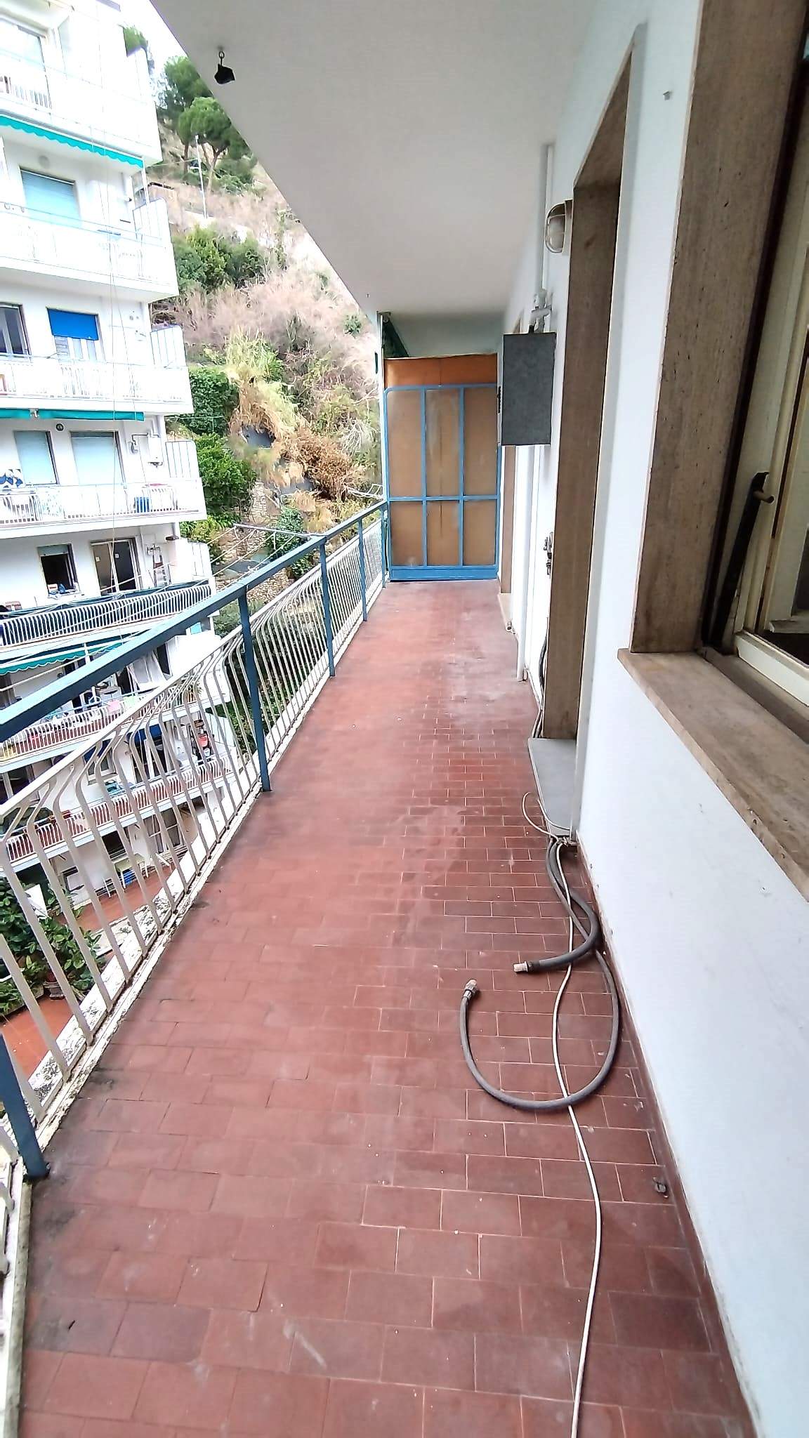 Gli spazi interni comprendono ingresso, soggiorno, cucina abitabile, camera matrimoniale e bagno con finestra. Ogni ambiente si apre sulla balconata. L’esposizione a ovest porta luce naturale e l’affaccio non su strada carrozzabile contribuisce a un contesto tranquillo e soleggiato.