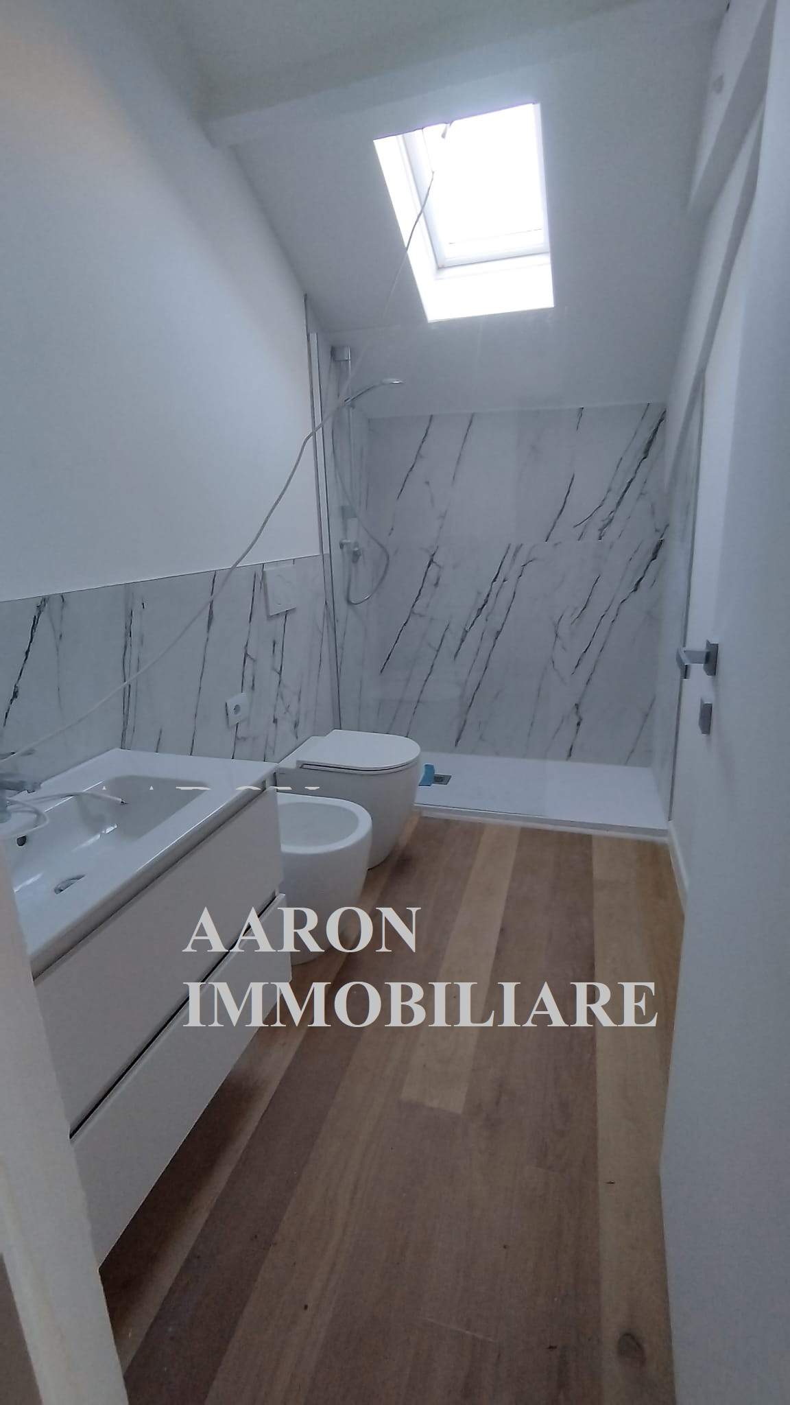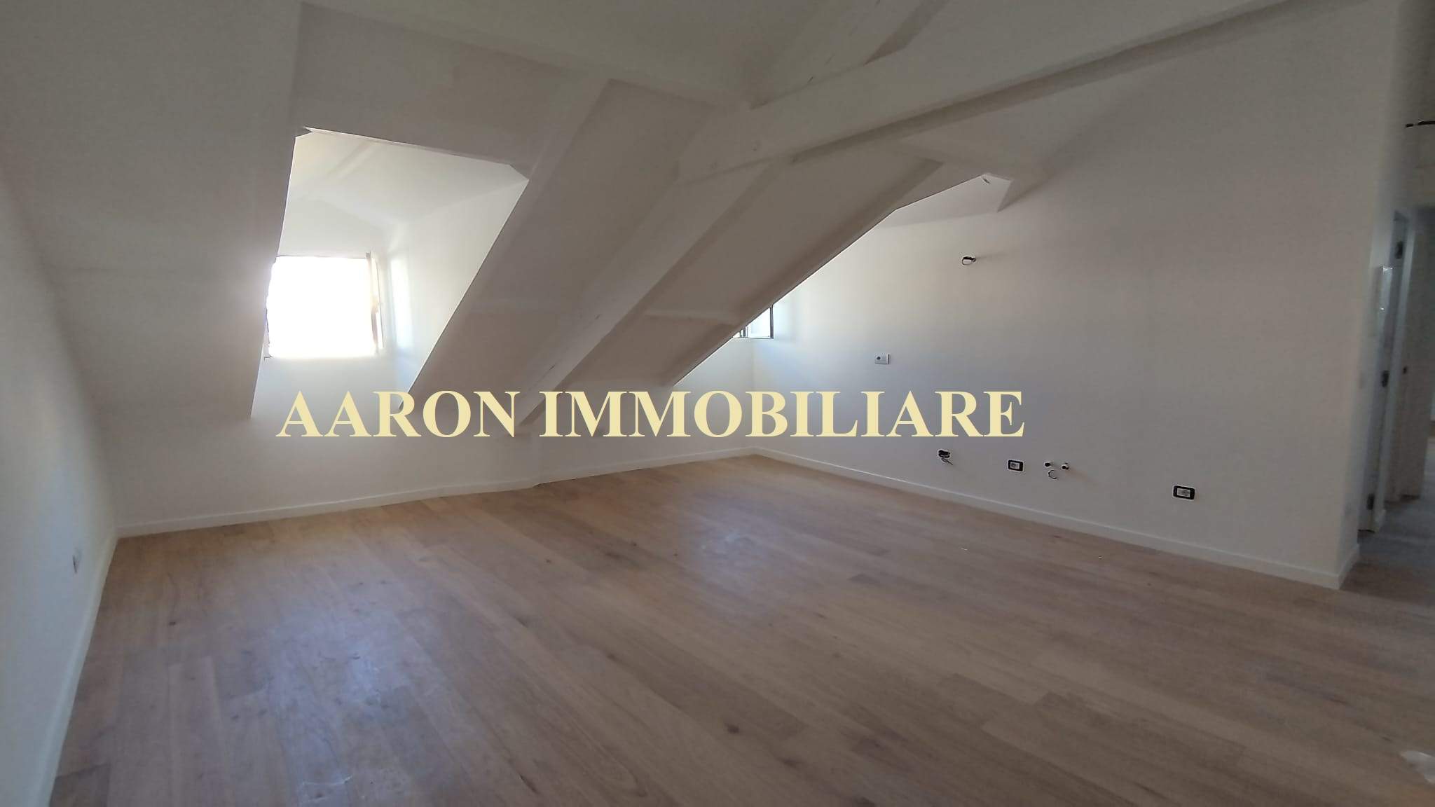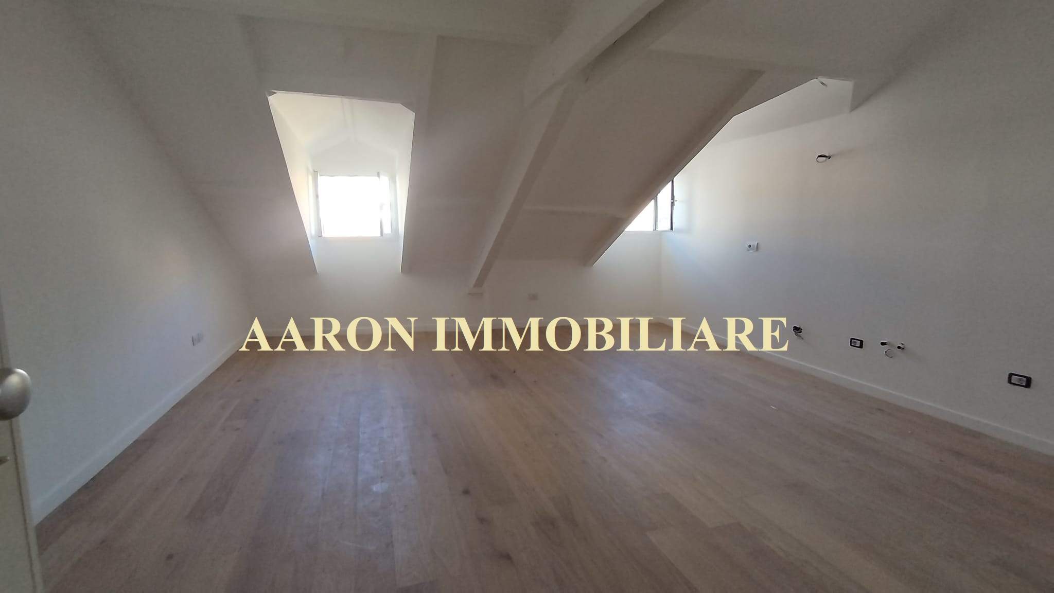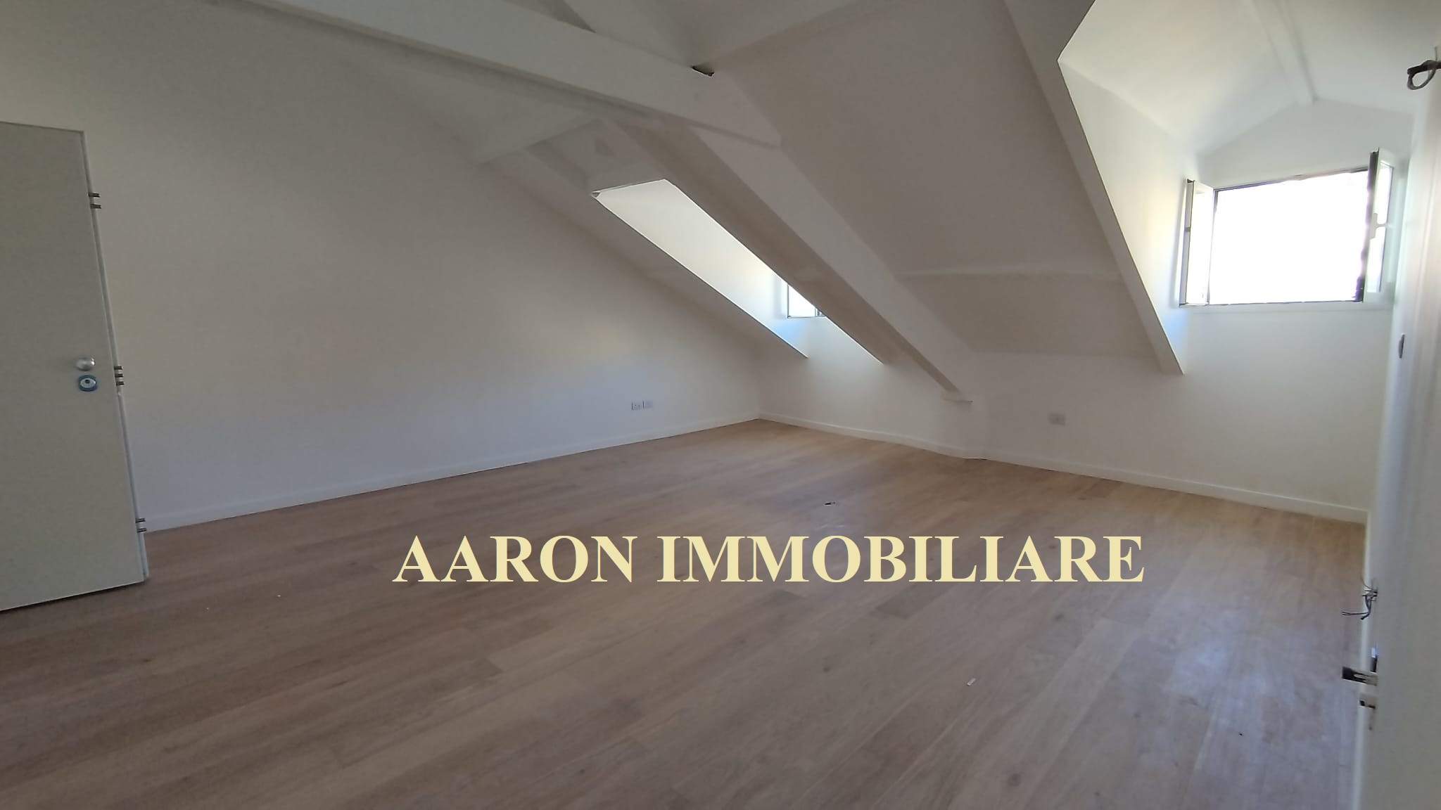 Soffitti alti, luminosità naturale. Vista aperta sulla città con scorcio di mare.