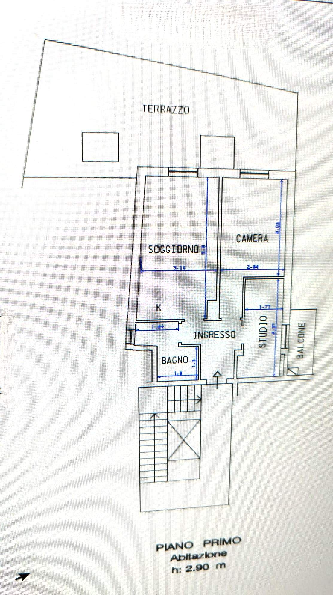 Situato al primo piano con ascensore, offre circa 60 mq. La distribuzione interna comprende soggiorno con angolo cottura, camera, cameretta, bagno, balcone di servizio e ampia terrazza. Riscaldamento autonomo con termoconvettore. € 250.000,00