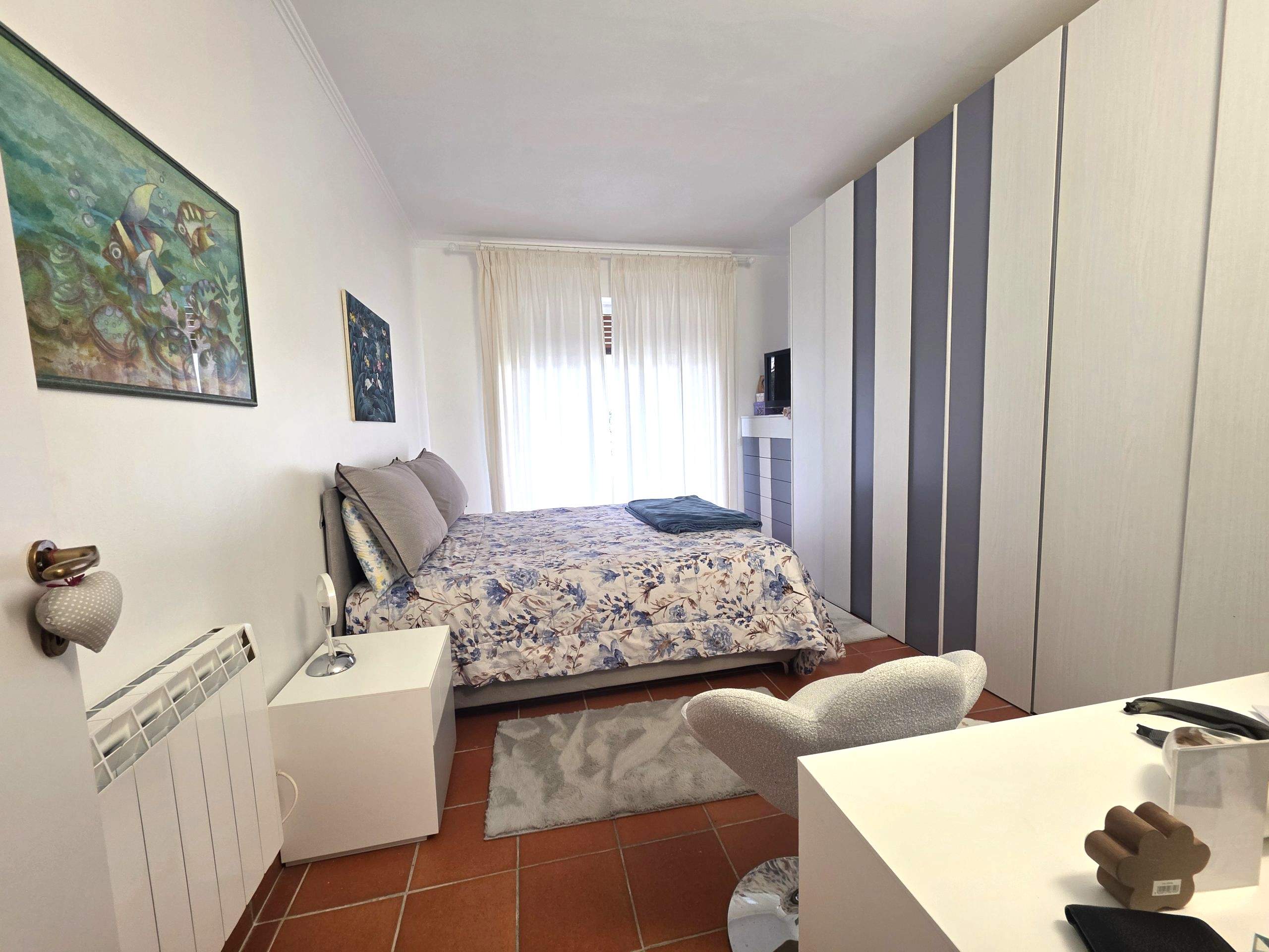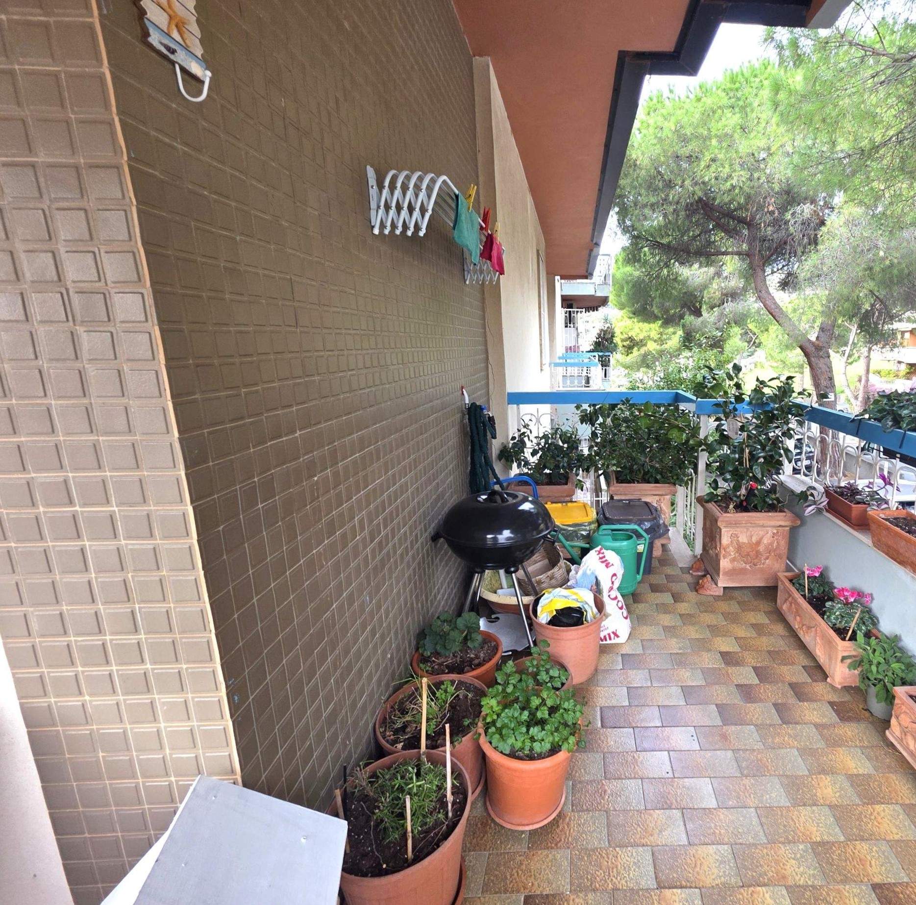 L’appartamento si trova al secondo piano con ascensore ed è finemente ristrutturato. Gli spazi sono distribuiti in modo funzionale: ingresso disimpegno, soggiorno con angolo cottura luminoso e con accesso al terrazzo vivibile, con vista mare e vista verde. La zona notte comprende una camera da letto, un grande bagno finestrato con box doccia e un comodo ripostiglio.