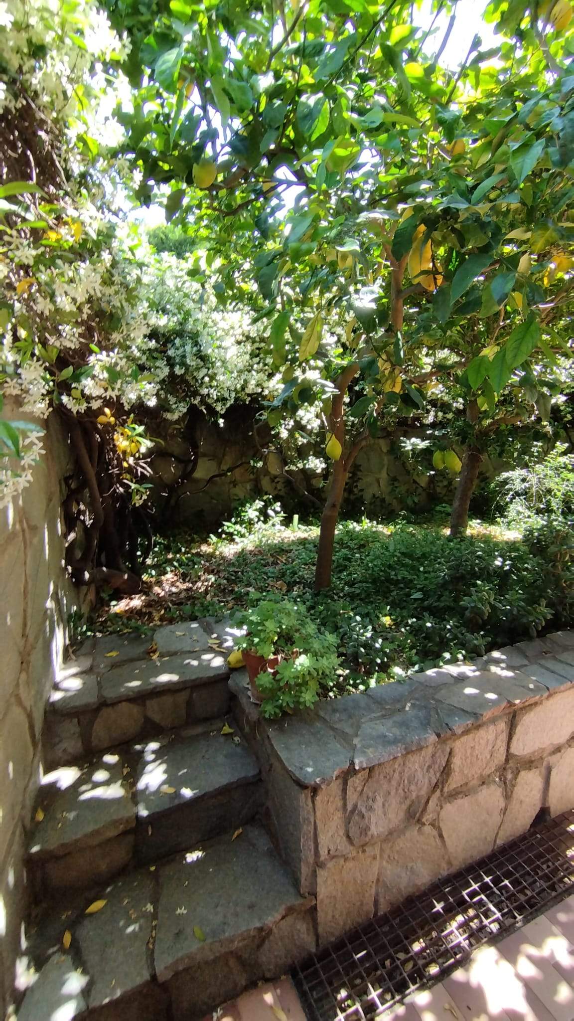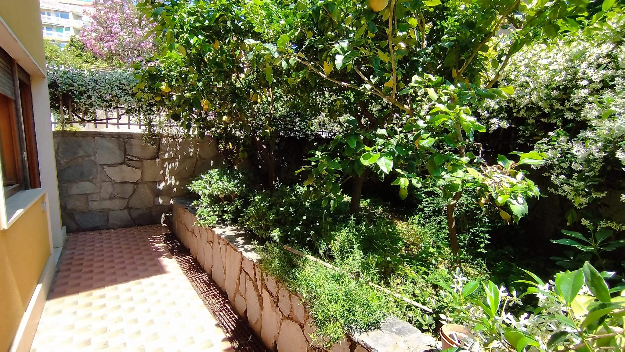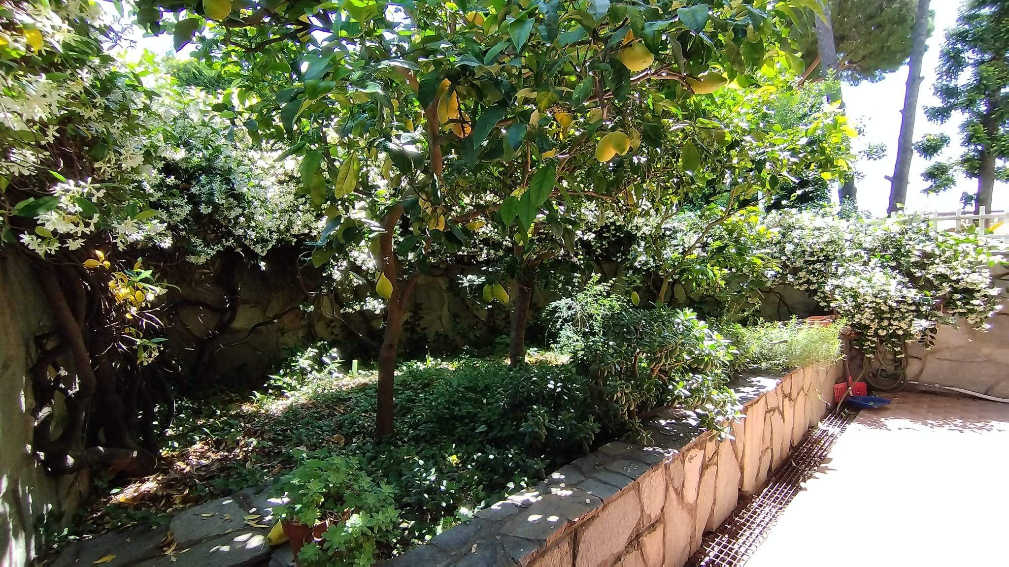 Il giardino privato circonda l’intero appartamento, in parte piastrellato ed è adatto per pranzi all’aperto o momenti di lettura. Presenza di piante di limoni e fiori. Spazio esterno utilizzabile anche per piccoli animali domestici o biciclette.